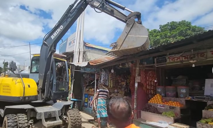 সেনাবাহিনী ও পুলিশ প্রশাসনের সহযোগিতায় হবিগঞ্জ শহরে অবৈধ স্থাপনা উচ্ছেদ অভিযান চালিয়েছে জেলা প্রশাসন ও হবিগঞ্জ পৌরসভা। জেলা আইন শৃংখলা কমিটির সভার সিদ্ধান্ত অনুযায়ী শহরের অবৈধ স্থাপনা উচ্ছেদ অভিযান পরিচালিত হচ্ছে। বৃহস্পতিবার বেলা সাড়ে ১১ টায় উচ্ছেদ অভিযান পরিচালনার জন্য নির্বাহী ম্যাজিষ্ট্র্যাট রুনা আক্তার ও পৃথিন্দ্র চাকমা‘র নেতৃত্বে একটি যৌথ টিম চৌধুরী বাজরে যায়। চৌধুরী বাজারের রাস্তার পাশে অবৈধ স্থাপনা, দোকানপাট মালামাল উচ্ছেদ করা হয়। এ সময় নিজ দায়িত্বে অনেকেই অবৈধ স্থাপনা সড়িয়ে নেয়। হবিগঞ্জ পৌরসভার পৌর নির্বাহী কর্মকর্তা মোহাম্মদ জাবেদ ইকবাল চৌধুরী উচ্ছেদ চলাকালে মাইকে ঘোষনা দিয়ে বলেন অবৈধ স্থাপনার কারনে শহরে যানজটসহ নানা সমস্যার সৃষ্টি হচ্ছে। অবৈধ স্থাপনা উচ্ছেদ অভিযান অব্যাহত থাকবে এবং আইন ভঙ্গকারীদের বিরুদ্ধে আইনানুগ ব্যবস্থা গ্রহন করা হবে। চৌধুরী বাজার ছাড়াও শায়েস্তানগর, তিনকোন পুকুর পাড়, থানার মোড়সহ বিভিন্ন পয়েন্টে উচ্ছেদ অভিযান চালানো হয়। হবিগঞ্জ পৌরসভার এক্সকেভেটর, ট্রাক, ভলান্টিয়ার ও শ্রমিক এ অভিযানে অংশগ্রহন করে। অভিযানে মোট ৩৭ টি অবৈধ স্থাপনা উচ্ছেদ করা হয়।
