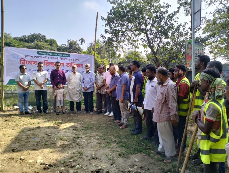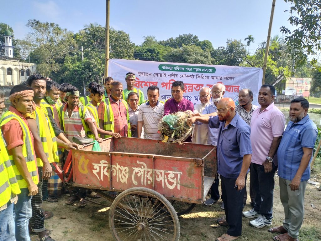 পুরাতন খোয়াই নদীর অবৈধ দখলকারদের তালিকা তৈরী করা হবে। যারা অবৈধভাবে দখল করে আছেন তাদেরকে উচ্ছেদের আওতায় নিয়ে এসে পুরাতন খোয়াই নদীর যে জৌলুস সেটা আমরা ফিরিয়ে আনার চেষ্টা করবো।’-হবিগঞ্জ শহরের সবুজবাগ পুরাতন খোয়াই নদীর পাড়ে শনিবার সকালে পরিচ্ছন্নতা অভিযানের উদ্বোধনী সভায় প্রধান অথিতির বক্তব্যে এসব কথা বলেন হবিগঞ্জ পৌরসভার প্রশাসক মোঃ মঈনুল হক। তিনি বলেন, ‘সরকারী সম্পত্তি রক্ষা করা আমাদের দায়িত্ব। তাই হবিগঞ্জ শহরের পুরাতন খোয়াই নদীকে দখলমুক্ত করার চেষ্টা করবো।’ তিনি আরো বলেন,‘শহরকে পরিচ্ছন্ন রাখতে হবিগঞ্জ পৌরসভার পরিচ্ছন্নতা কর্মীরা অক্লান্ত পরিশ্রম করে যাচ্ছেন।’ পরিচ্ছন্নতা অভিযানের উদ্বোধনী সভায় বিশেষ অতিথি হিসেবে বক্তব্য রাখেন বাংলাদেশ পরিবেশ আন্দোলন, বাপা’র হবিগঞ্জ সভাপতি প্রফেসার ইকরামুল ওয়াদুদ, হবিগঞ্জ প্রেসক্লাবের প্রতিষ্ঠাতা সভাপতি এডভোকেট মনসুর উদ্দিন আহমেদ ইকবাল, খোয়াই রিভার ওয়াটারকিপার তোফাজ্জল সোহেল, রাজনৈতিক ও সামাজিক সংগঠক সৈয়দ মুশফিক আহমেদ প্রমুখ। অনুষ্ঠান পরিচালনা করেন হবিগঞ্জ পৌরসভার পৌর নির্বাহী কর্মকর্তা মোহাম্মদ জাবেদ ইকবাল চৌধুরী। বক্তারা হবিগঞ্জ শহরকে পরিচ্ছন্ন রাখতে পৌরসভার পরিচালিত কর্মসূচীর প্রশংসা করেন। সাথে সাথে এর ধারাবাহিকতা অব্যাহত থাকবে বলে আশাবাদ ব্যক্ত করেন। পৌরসভার পরিচ্ছন্নতা কাজের পাশাপাশি পরিচ্ছন্ন পরিবেশ বজায় রাখতে তারা নাগরিকদেরকেও দায়িত্বশীল ও ইতিবাচক ভুমিকা রাখার আহবান জানান।