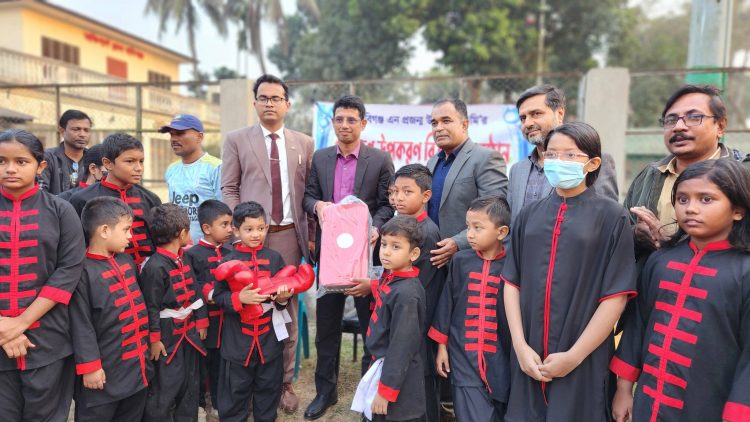 হবিগঞ্জ এন প্রজন্ম উশু একাডেমীর প্রশিক্ষণ উপকরণ বিতরণ করেছে হবিগঞ্জ পৌরসভা। রবিবার জেলা ক্রীড়া সংস্থা কার্যালয়ে হবিগঞ্জ পৌরসভা আয়োজিত এই ‘প্রশিক্ষণ উপকরণ বিতরণ’ অনুষ্ঠানে প্রধান অতিথি হিসেবে উপস্থিত ছিলেন হবিগঞ্জ পৌরসভার প্রশাসক মোঃ মঈনুল হক। প্রধান অতিথির বক্তব্যে শিশু প্রশিক্ষনার্থীদের উদ্দেশ্যে তিনি বলেন, ‘হবিগঞ্জ পৌরসভার পক্ষ হতে যে উপকরণ বিতরণ করা হলো আশাকরি ব্যক্তিগত নিরাপত্তা রক্ষায় সেগুলো তোমাদের প্রশিক্ষণে সহায়ক ভুমিকা পালন করবে। দেশপ্রেমের মহান আদর্শে উজ্জীবিত হয়ে দেশের কল্যানে তোমরা নিজেদেরকে নিয়োজিত করবে- এই প্রত্যাশা করি।’ ভবিষ্যতেও এ সহযোগিতা অব্যাহত থাকবে বলে তিনি উল্লেখ করেন। ‘প্রশিক্ষণ উপকরণ বিতরণ’ অনুষ্ঠানে উপস্থিত ছিলেন হবিগঞ্জ পৌরসভার পৌর নির্বাহী কর্মকর্তা মোহাম্মদ জাবেদ ইকবাল চৌধুরীসহ অন্যান্য কর্মকর্তাবৃন্দ।