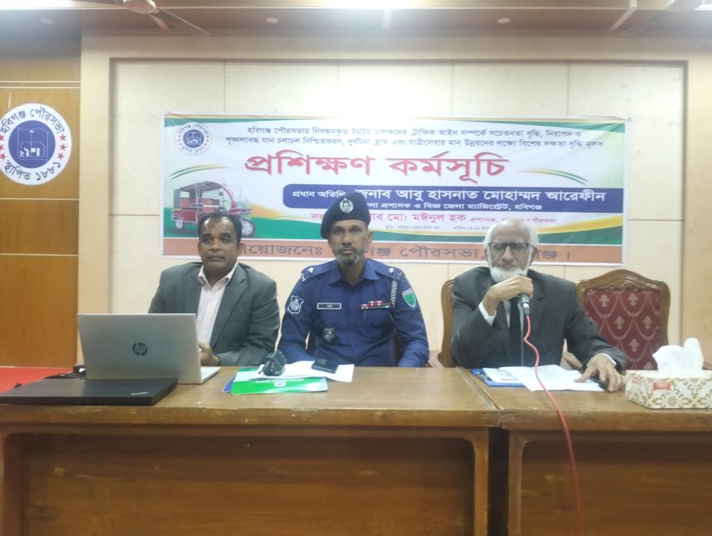 হবিগঞ্জ নিবন্ধনকৃত টমটম চালকদের ট্রাফিক আইন সম্পর্কে সচেতনতা ও দক্ষতা বৃদ্ধির জন্য প্রশিক্ষণ অনুষ্ঠিত হয়েছে। মঙ্গলবার হবিগঞ্জ পৌরসভার আয়োজনে দুইদিন ব্যাপী ঐ প্রশিক্ষণ শুরু হয়। পৌরসভার ১৩০০ চালকদের মধ্যে ৬৫০ টি টমটমের চালকদের প্রশিক্ষণ দেয়া হয় প্রথম দিন। বুধবার দ্বিতীয় দিন দেয়া হবে বাকি ৬৫০ জন চালকের প্রশিক্ষণ । এদিন প্রশিক্ষণে উপস্থিত থাকবেন হবিগঞ্জের জেলা প্রশাসক আবু হাসনাত মোহাম্মদ আরিফিন ও হবিগঞ্জ পৌরসভার প্রশাসক মোঃ মঈনুল হক। মঙ্গলবার প্রথম দিন প্রশিক্ষণ পরিচালনা করেন হবিগঞ্জ প্রেসক্লাবের প্রতিষ্ঠাতা সভাপতি ইকবাল মনসুর উদ্দিন আহমেদ ইকবাল, বিআরটিএ এর মোটরযান পরিদর্শক মেহেদী হাসান ও সদর ট্রাফিক ইন্সপেক্টর মোঃ আব্দুন নুর। অনুষ্ঠান পরিচালনা করেন হবিগঞ্জ পৌরসভার পৌর নির্বাহী কর্মকর্তা মোঃ জাবেদ ইকবাল চৌধুরী। চালকদের আইন সম্পর্কে সচেতনতা বৃদ্ধি, নিরাপদ ও শৃঙ্খলাবদ্ধ যান চলাচল নিশ্চিতকরণ, দুর্ঘটনা হ্রাস এবং যাত্রী সেবার মান উন্নয়নের লক্ষ্যে হবিগঞ্জ পৌরসভা এই প্রশিক্ষণের আয়োজন করে।