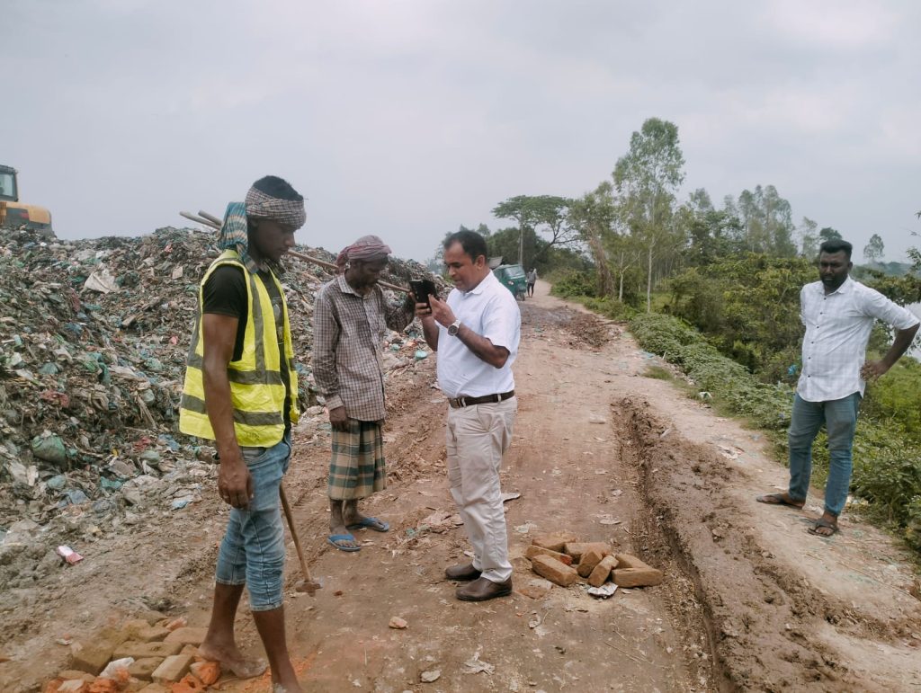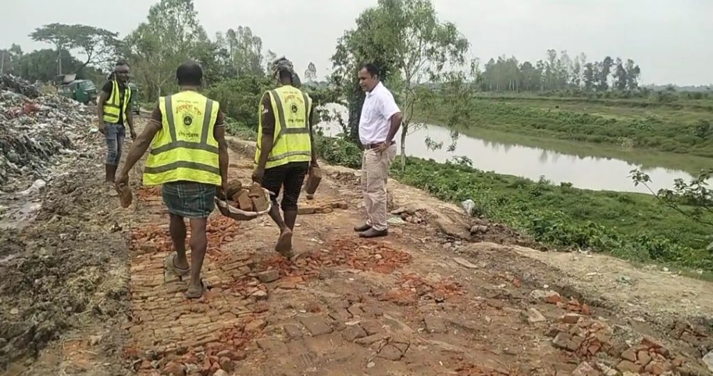 উত্তরকুল মৌজায় অবস্থিত পৌরসভার ল্যান্ডফিলের সামনের রাস্তায় ইট-বালু ফেলা হয়েছে হবিগঞ্জ পৌরসভার পক্ষ হতে। বুধবার সকালে এ কাজ পরিদর্শনের জন্য ল্যান্ডফিল রাস্তায় যান হবিগঞ্জ পৌরসভার পৌর নির্বাহী কর্মকর্তা মোহাম্মদ জাবেদ ইকবাল চৌধুরী। এ সময় তিনি ভিডিও কনভারসেশনে আলাপ করেন হবিগঞ্জ পৌরসভার প্রশাসক মোঃ মঈনুল হকের সাথে। পৌর নির্বাহী কর্মকর্তা ল্যান্ডফিলে নিয়োজিত ভাড়াকৃত এক্সকেভেটরের কাজের পরিস্থিতি এবং রাস্তায় ইট-বালু ফেলার কাজ সম্পর্কে প্রশাসক মোঃ মঈনুল হককে অবহিত করেন। এছাড়াও তিনি এলাকাবাসীর সাথে আলাপ করেন। রাস্তায় ইট ও বালু ফেলার কারনে এলাকাবাসী সন্তোষ প্রকাশ করে। তারা ওই রাস্তা স্থায়ীভাবে মেরামতের দাবী জানায়। পৌর নির্বাহী কর্মকর্তা মোহাম্মদ জাবেদ ইকবাল চৌধুরী বলেন,‘এই রাস্তা পানি উন্নয়ন বোর্ডের আওতায় রয়েছে। ইতিমধ্যে আলমবাজার হতে ল্যান্ডফিল্ড পর্যন্ত রাস্তা মেরামতের জন্য পানি উন্নয়ন বোর্ডকে হবিগঞ্জ পৌরসভার পক্ষ হতে চিঠি দেয়া হয়েছে। বর্তমানে রাস্তায় গর্ত হয়ে যাওয়ার কারনে চলাচল ও বর্জ্য অপসারণ কাজ বাধগ্রস্থ হচ্ছে। তাই ইটবালু দিয়ে অস্থায়ীভাবে গর্ত ভরাট করে দেয়া হচ্ছে। এতে পরিস্থিতির অনেকটা উন্নতি হবে।’