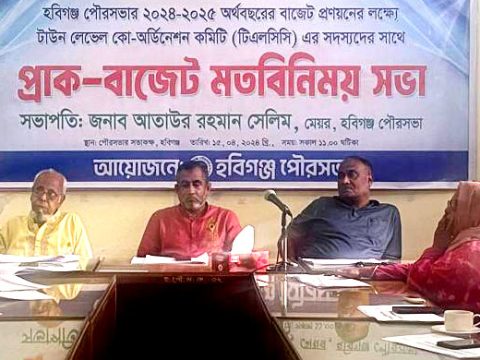 হবিগঞ্জ পৌরসভায় প্রাক-বাজেট মতবিনিময় সভা ॥ খাল খননসহ কার্লভাট নির্মাণকরে বৃষ্টির পানি নিষ্কাশনের উদ্যোগ গ্রহন করেছি ॥ পৌরসভার জমি উদ্ধার করে আয়বর্ধক প্রকল্প গ্রহন করেছি ॥ সকলের মতামত ও পরামর্শে জনকল্যাণমুলক বাজেট প্রনয়ন করতে চাই-মেয়র আতাউর রহমান সেলিম ॥